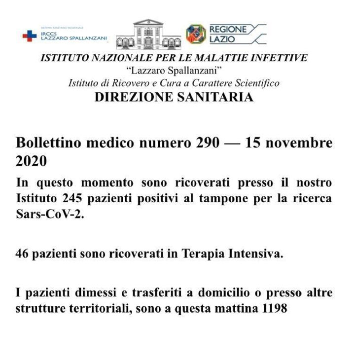 Bollettino medico numero 290 – 15 Novembre 2020