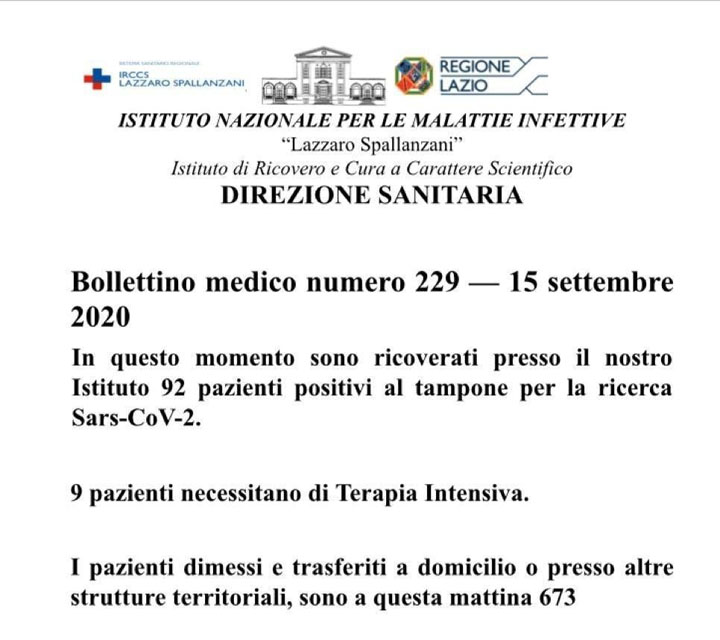 Questo è il Bollettino giornaliero dell’Istituto Nazionale di Malattie Infettive “Lazzaro Spallanzani”.