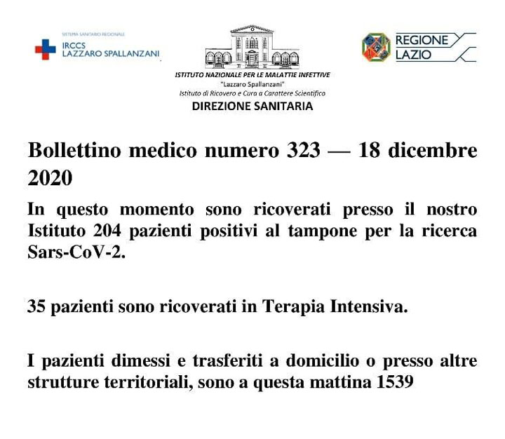 Bollettino medico numero 323 – 18 Dicembre 2020