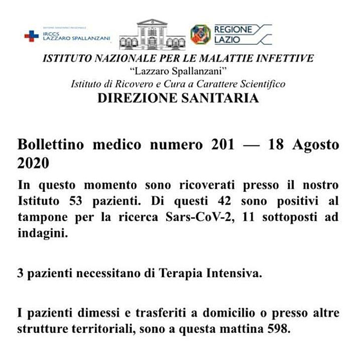 Bollettino medico numero 201 – 18 Agosto 2020