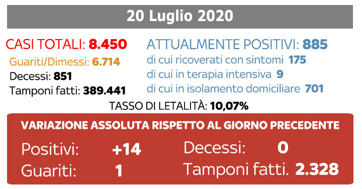 Oggi, 20 Luglio, si registra un dato di 14 casi.