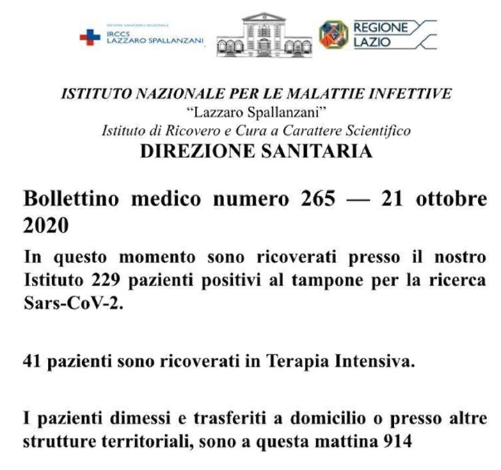 Bollettino medico numero 265 – 21 Ottobre 2020