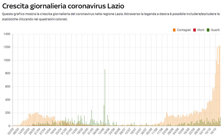 In questa tabella vengono riportati i dati del coronavirus nella regione Lazio per ogni giorno con l’incremento giornaliero.