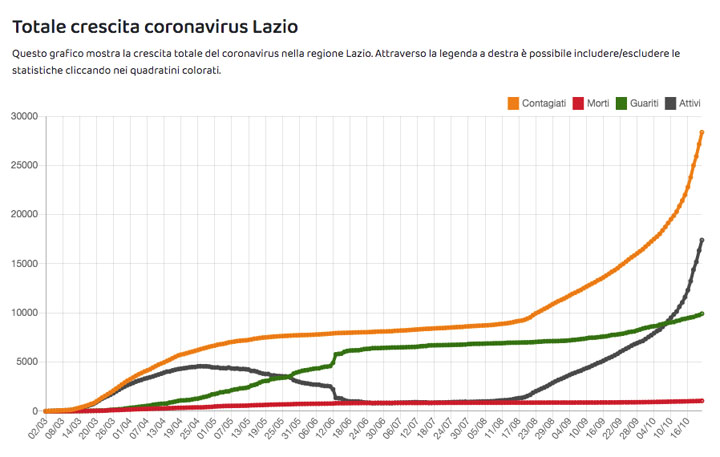 Tabella giornaliera coronavirus Lazio