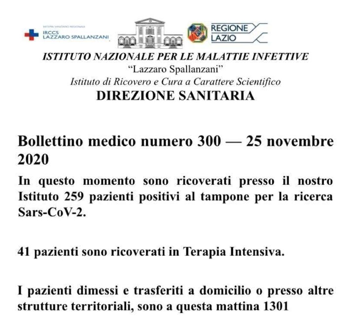 Bollettino medico numero 300 – 25 Novembre 2020