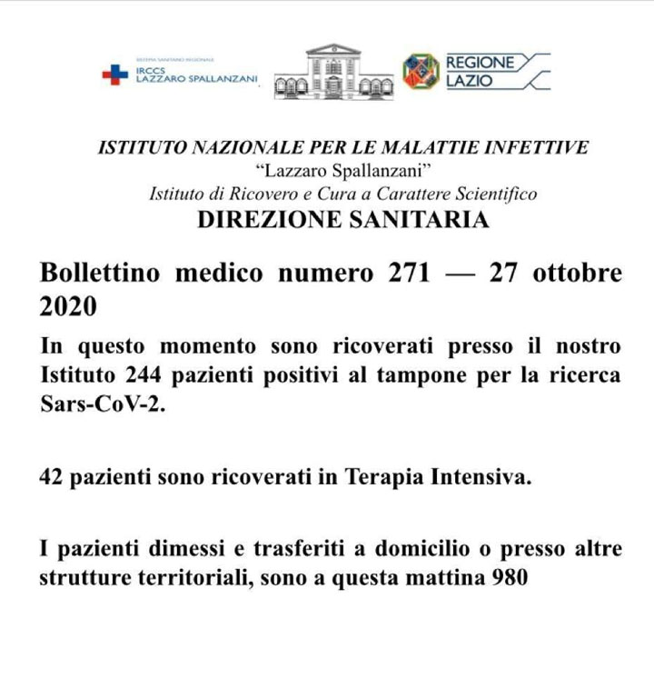Bollettino medico numero 271 – 27 Ottobre 2020