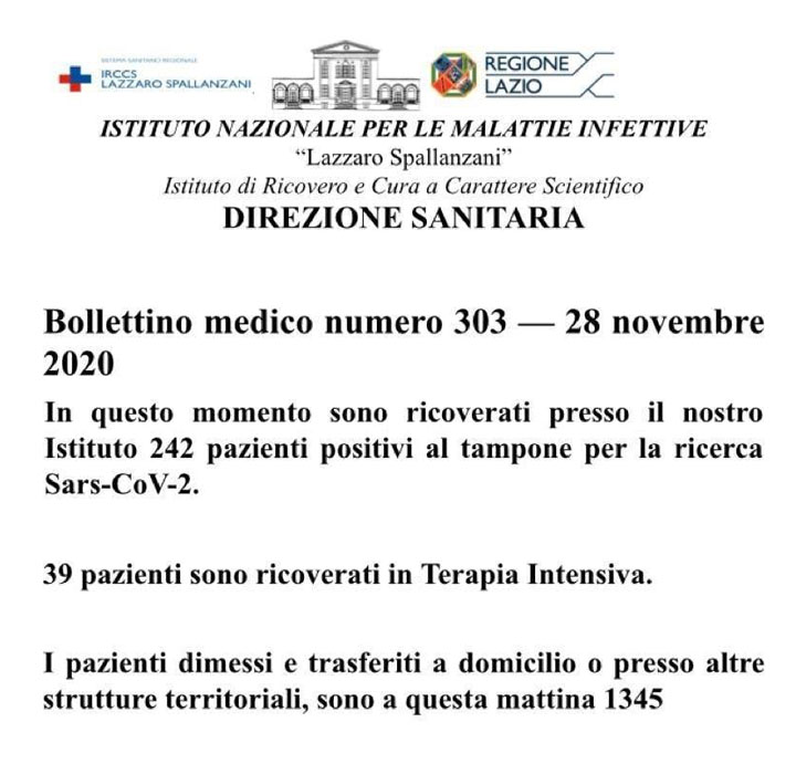 Bollettino medico numero 303 – 28 Novembre 2020