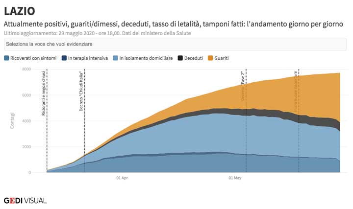 Emergenza Coronavirus. 29-05-2020. Nel Lazio record di guariti e di dimessi. 13 decessi. I dati del contagio. D.L. 16-05. Dpcm 17-05. L’Ordinanza regionale