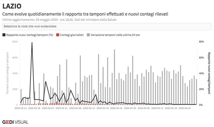 Oggi, 29 Maggio, registriamo un dato di 16 casi positivi nelle ultime 24h con un focolaio subito circoscritto ad Anzio e un trend a 0,2%.