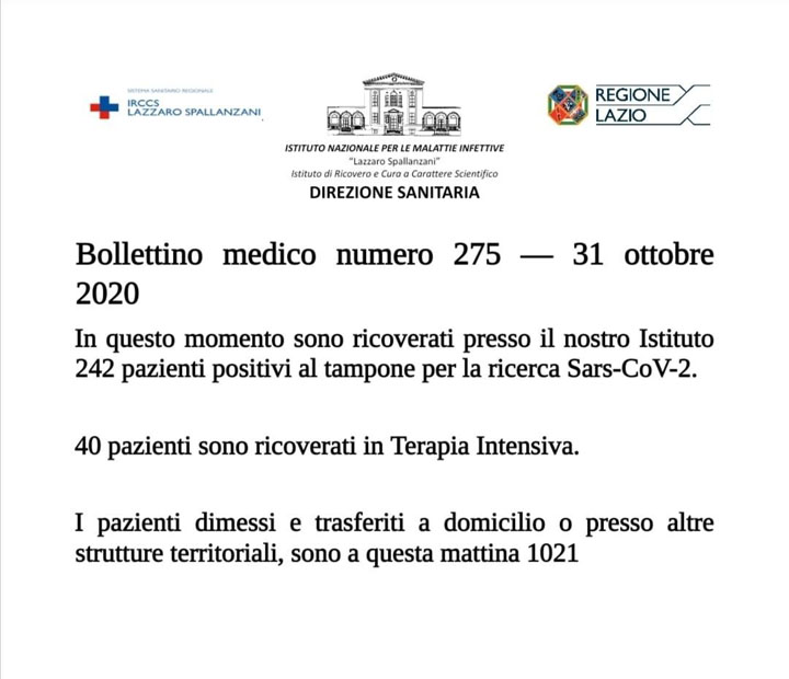 Bollettino medico numero 275 – 31 Ottobre 2020
