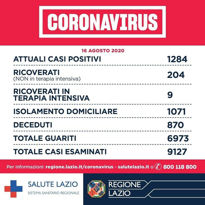 Bollettino medico numero 199 – 16 Agosto 2020