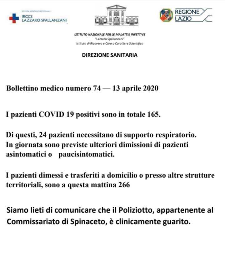 Emergenza Coronavirus. #IORESTOACASA. 13-04-2020. I dati del contagio nel Lazio. Tutte le informazioni utili