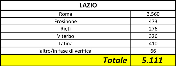 Si amplia la forbice tra coloro che escono dalla sorveglianza domiciliare (17.117) e coloro che sono entrati in sorveglianza (11.771) di circa 6mila unità. Nelle province di Viterbo, Rieti e Frosinone non si registrano decessi nelle ultime 24h.