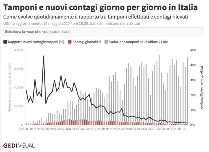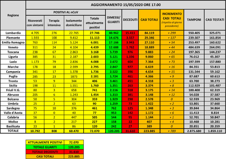 Questi i dati di oggi, 15 Maggio, relativi alla situazione