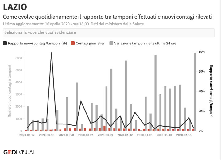 Oggi, 16 Aprile, nel Lazio si registra un dato di 148 casi di positività e un trend al 2,8%.