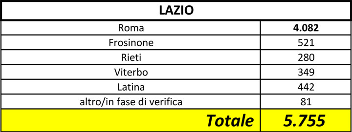 La situazione nel Lazio