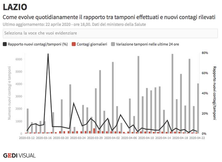 Oggi, 22 Aprile, si registra un dato di 80 casi di positività e prosegue un andamento stabilmente sotto i 100 casi e un trend al 1,3%.