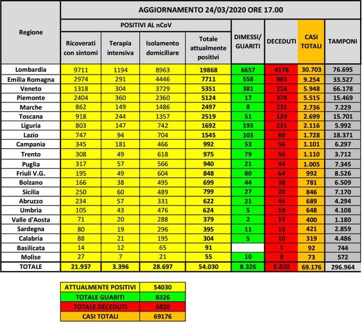 Dati Ultimo Aggiornamento: 24-03-2020 ore 18:00