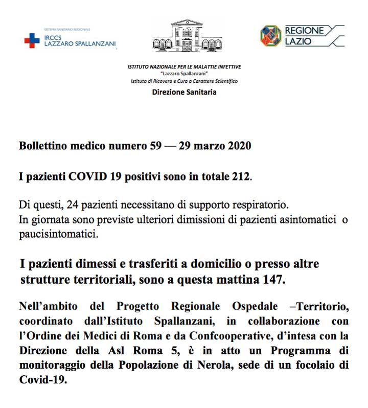 Emergenza Coronavirus. #IORESTOACASA. 29-03-2020. I dati del contagio nel Lazio. Tutte le informazioni utili