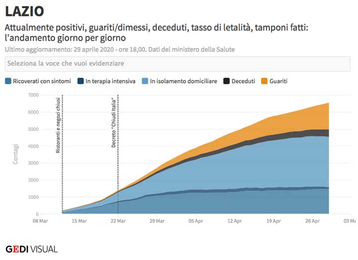 Emergenza Coronavirus. #IORESTOACASA. 29-04-2020. Nel Lazio record di guariti (88). Ancora 17 decessi e 78 nuovi positivi. I dati del contagio. Tutte le informazioni utili