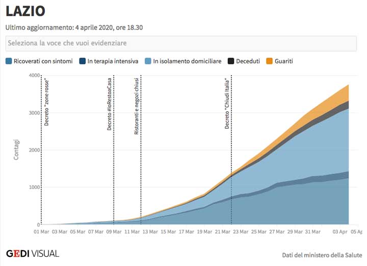 Emergenza Coronavirus. #IORESTOACASA. 4-04-2020. I dati del contagio nel Lazio. Tutte le informazioni utili