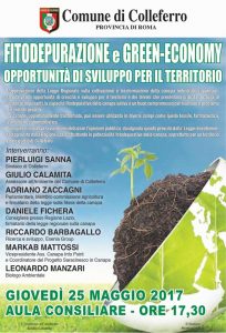 COLLEFERRO (RM) – Giovedì 25 Maggio, a partire dalle ore 17,30 presso l’Aula Consiliare del Comune di Colleferro si terrà un incontro pubblico sul tema “Fitodepurazione e Green Economy. Opportunità di sviluppo per il territorio”.