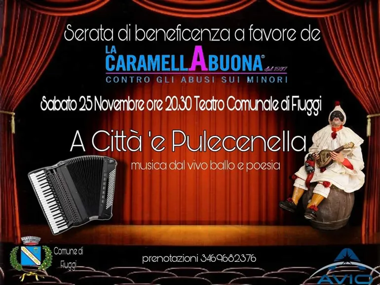 Con la stupenda voce narrante di Francesca Romana Marsili il pubblico verrà traghettato in un viaggio immaginario nei vicoli e nelle piazze di Napoli. “A città ‘e Pulecenella” è uno spettacolo di beneficenza il cui ricavato andrà devoluto a favore dell’associazione “La Caramella Buona” che da anni si occupa della tutela dei minori e delle donne.