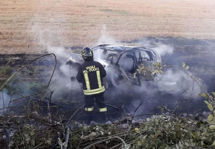 Uno dei veicoli in conseguenza del forte impatto usciva di strada e prendeva fuoco (vedi foto).