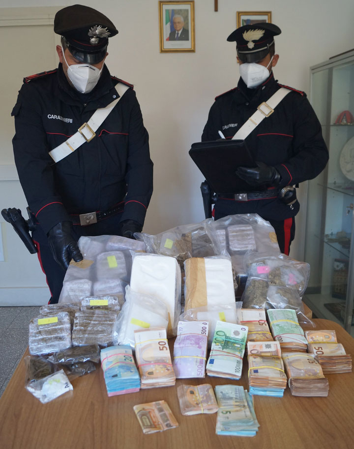 Formello. 3 Kg. di coca, 170 panetti di hashish, 200 grammi di marijuana ed 87mila euro in contanti. 29enne arrestato dai Carabinieri
