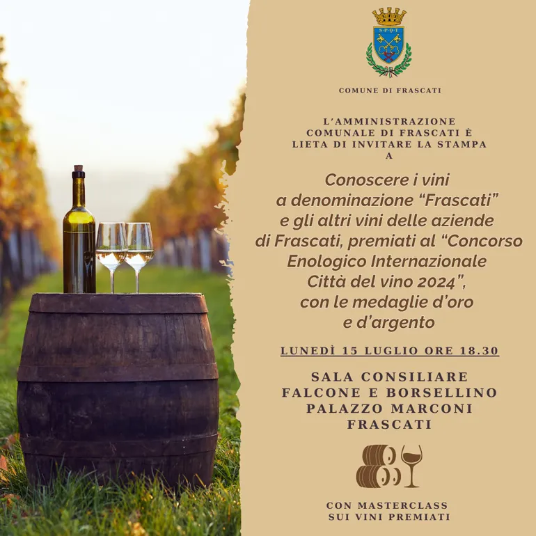 Lunedì 15 luglio 2024 alle ore 18.30 presso la Sala Consiliare Falcone e Borsellino a Palazzo Marconi a Frascati si vivranno due momenti dedicati alla masterclass sui vini premiati: