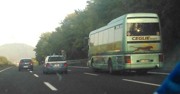 Scendono tutti dal pullman, gli animi sono agitati e con violenza recidono la rete di protezione della sede autostradale. Inizia lo scavalcamento da parte di alcuni di loro che rapidamente raggiungono un’auto in transito lungo una arteria secondaria adiacente l’autostrada.