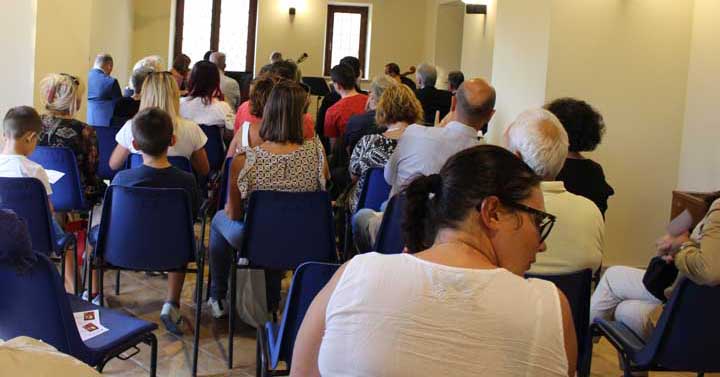 Prima del vernissagge, un appuntamento musicale che ha emozionato e coinvolto il numeroso pubblico presente nelle sale del piano terra della villa, dimostrando come la rassegna Arte & Musica, curata dalla Maestra Katia Sacchetti che ne è la direttrice artistica incontri incondizionatamente il favore del pubblico e sappia unire due linguaggi quali la pittura e la musica.