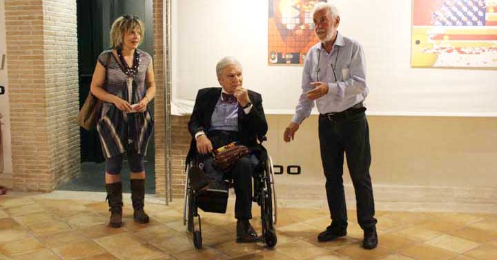A seguire si è giunti all’inaugurazione della Mostra al Piano Superiore, con gli interventi del curatore Prof. Alfio Borghese, che ha l’ha definita “particolare” soprattutto per il metodo tutto personale dell’artista nel trarre da un’immagine mille altre cose, riferendosi ai suoi sentimenti, alla storia, ai personaggi ed ai miti del nostro tempo.