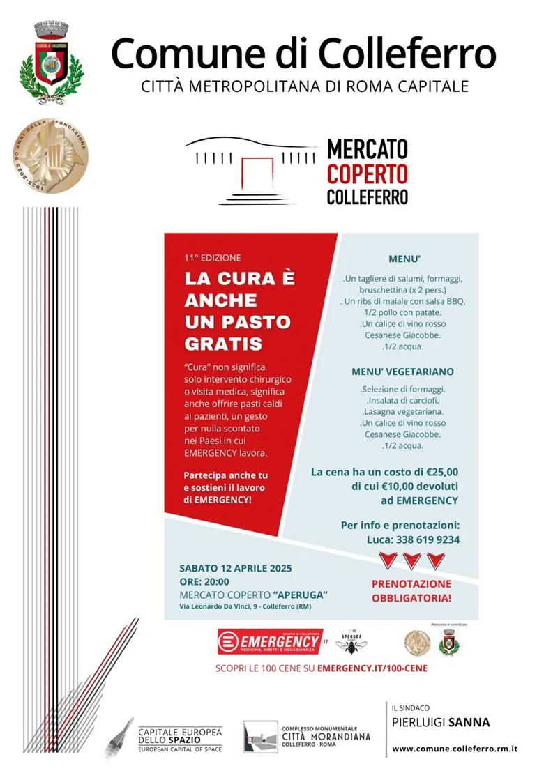 Evidenziamo che il Gruppo Emergency Colleferro ha organizzato per Sabato 12 Aprile alle ore 20 al Mercato Coperto di Colleferro l’iniziativa, giunta all’11^ Edizione di “Cento Cene per Emergency”.