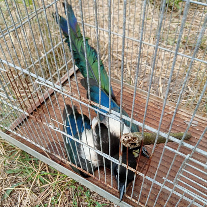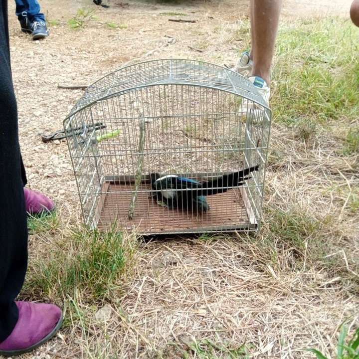 La piccola gazza ladra si presentava con entrambe le zampette, volutamente legate da uno spago che gli ha procurato purtroppo una frattura ad una delle due arti, probabilmente era stata catturata ed è riuscita a spiccare il volo.