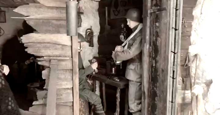 L’area di 400 mq, visitabile gratuitamente sino al 4 Novembre 2018, è suddivisa in tre zone. Nella prima è possibile soffermarsi a guardare, tra i vari e rari reperti esposti, il fucile con il quale il Finanziere Pietro Dall’Acqua esplose -la sera del 23 maggio 1915 -il primo proiettile della Guerra per respingere un’incursione di soldati austriaci condotta dal confinario Ponte di Brazzano; ma anche ambientazioni ricostruite nelle loro reali dimensioni, riproducenti nel dettaglio i posti di comando e di combattimento utilizzati dai finanzieri nel primo conflitto mondiale. Attraversando il primo settore si ha quasi l’impressione di essere catapultati indietro nel tempo, direttamente sui campi di battaglia, con la possibilità di saggiare da vicino le dure condizioni di vita delle migliaia di Finanzieri al fronte (pari a oltre un terzo della forza effettiva dell’epoca), la metà dei quali subì gravissime ferite e mutilazioni o, nel peggiore dei casi, mai più fece ritorno a casa.