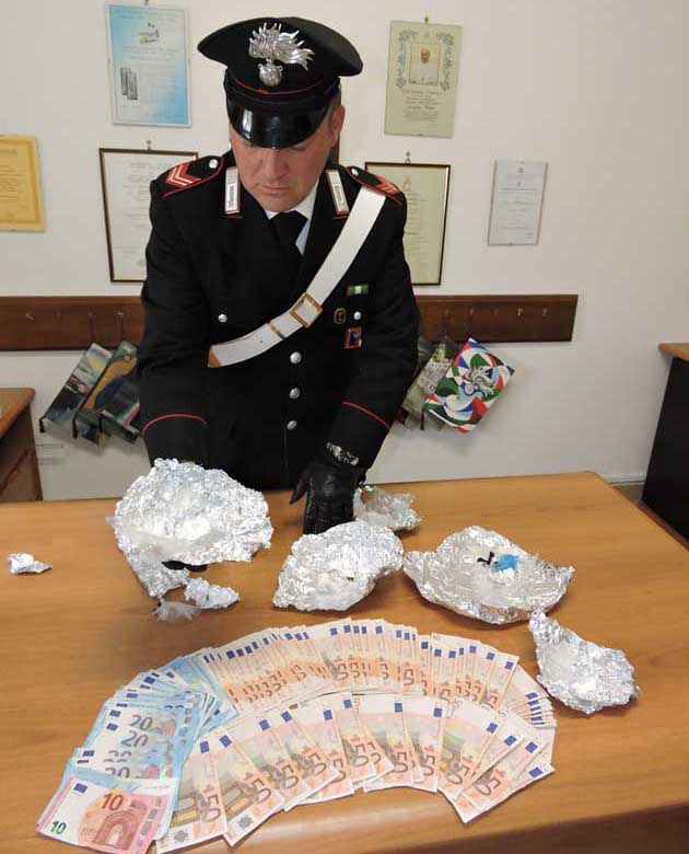 Infatti, dopo accurate indagini e un’attenta attività di osservazione, controllo e pedinamenti i militari della Stazione CC di Genzano di Roma hanno proceduto a perquisire l’abitazione di due giovani, C.M. 32enne e R.E. 33, marito e moglie della zona, all’interno della quale, abilmente occultata nella cucina, gli operanti hanno rinvenuto 40 grammi di sostanza stupefacente di tipo “cocaina”, già confezionata e la somma in contante di 4.900 euro, ritenuta provento dell’attività illecita di spaccio.