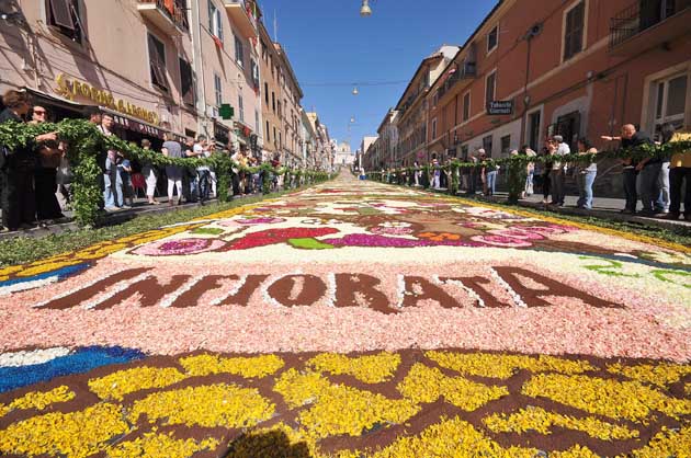 Diciassette i quadri che verranno realizzati dai maestri infioratori su via Italo Belardi, oltre a quello che verrà allestito in piazza Tommaso Frasconi e quello ai Landi.