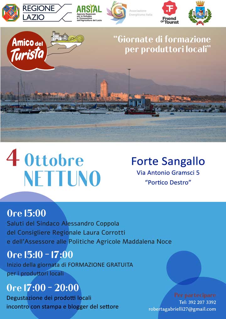 Il laboratorio si chiama ‘Amico del turista – Friend of Tourist’ ed è organizzato dall’Associazione Energitismo Italia con l’Arsial, l’agenzia della Regione Lazio dedicata all’agricoltura e alla promozione dei prodotti del Lazio.