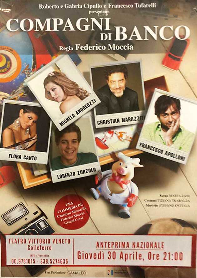 Giovedì 30 Aprile al Teatro Vittorio Veneto di Colleferro anteprima nazionale della commedia “Compagni di banco” di Federico Moccia