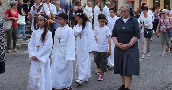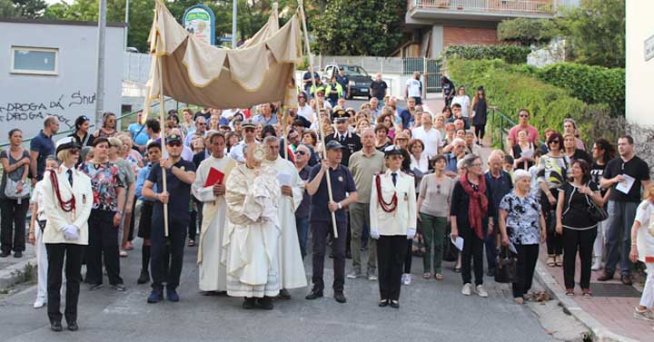 Grande e commossa partecipazione di fedeli per la Processione del Corpus Domini, affidata quest’anno alla Parrocchia di S. Barbara