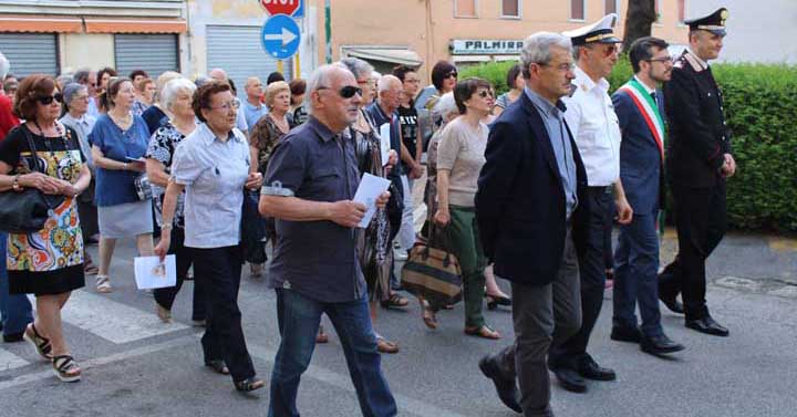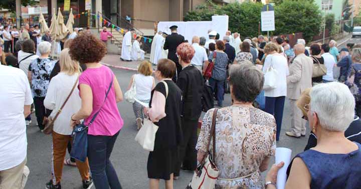Prima sosta presso l’altare allestito a Piazza Mazzini, dove è stato deposto l’ostensorio e recitato preghiere e canti.