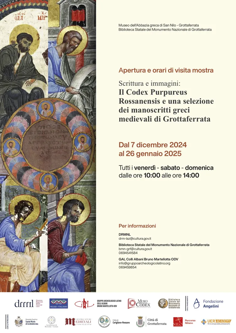 Accanto al Codex Purpureus Rossanensis, la mostra esporrà anche preziosi manoscritti medievali criptensi degli Evangeli. Un legame profondo unisce queste opere: non solo San Nilo, nato nella terra del Codex e morto alle pendici del Tuscolo, ma soprattutto il messaggio universale del Vangelo. Prima di essere splendidi testi miniati, gli Evangeli sono la Buona Notizia di Gesù Cristo, una Parola viva e salvifica.