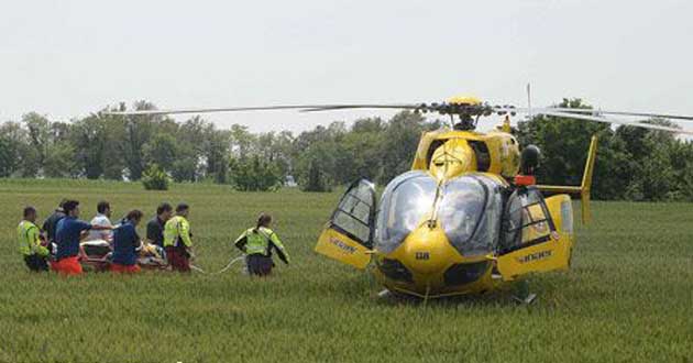 Per lui trauma cranico e fratture multiple con esposizione all’arto inferiore sinistro.