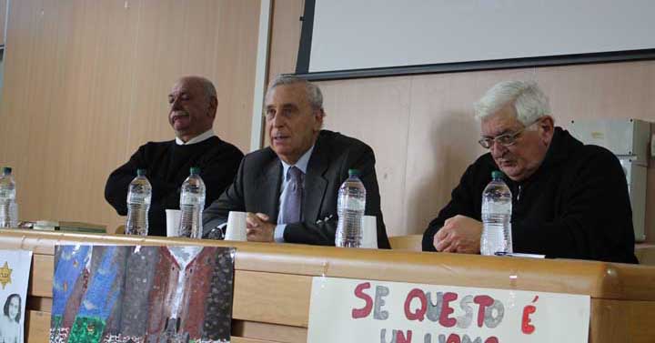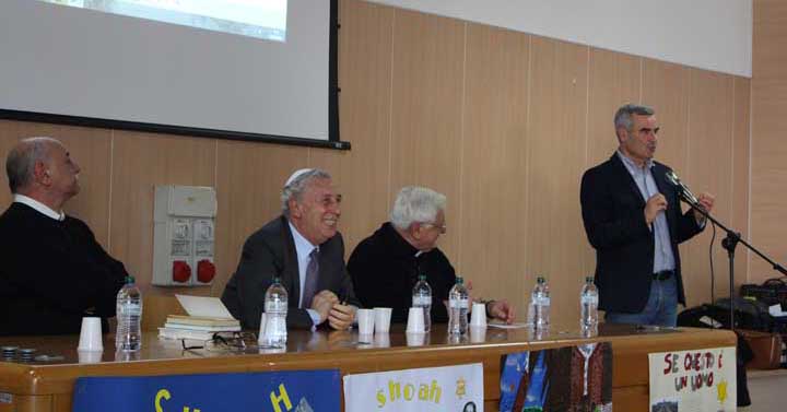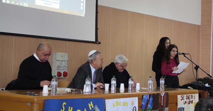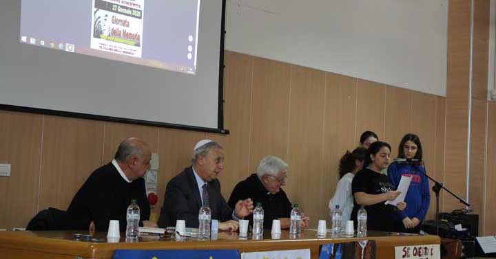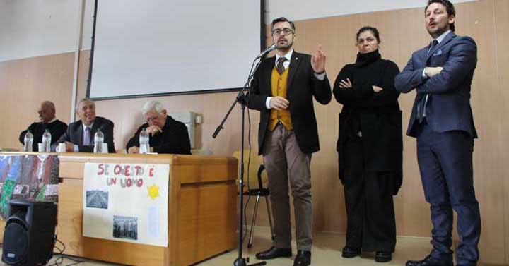 Mons. Vincenzo Apicella si è rivolto con grande familiarità agli studenti sottolineando come la cosa più importante che la radice ebraico-cristiana ci ha dato è la dignità della persona, il diritto assoluto al rispetto. Se possediamo questo anticorpo sapremo far fronte alla violenza ed impedire che “ciò che è stato non abbia più a ripetersi”. Oggi è Shoah la morte di tanti migranti nel Mediterraneo, gli attentati ed i rapimenti nel continente africano, le guerre che mietono morti nel mondo intero e dobbiamo impegnarci al rispetto dell’altro, all’accoglienza e alla solidarietà.