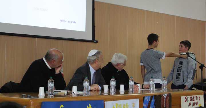 Ad aprire i lavori è stata la Dirigente Scolastica d.ssa Marika Trezza che ha ringraziato gli illustri relatori Mons. Vincenzo Apicella Vescovo Diocesi Velleri-Segni, il Prof. Giacomo Moscati Vicepresidente della Comunità Ebraica di Roma, Massimiliano Aquilante Pastore della Chiesa Evangelica Valdese di Colleferro e le autorità intervenute: il Sindaco di Colleferro Pierluigi Sanna, il Sindaco di Gavignano Ivan Ferrari ed il Vice Sindaco di Olevano Romano Paola Buttarelli.