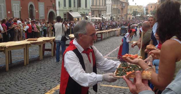 Momento culminante della manifestazione, Domenica 20 Settembre alle 18:00, la bruschetta più lunga del mondo: 3mila e 500 fette di pane casareccio Igp, condite con oltre 60 litri di olio extravergine di oliva, 5mila pomodorini e 20 kg di cicoria, saranno allestite su un tavolo di 250 metri su via Italo Belardi, la storica via dell’infiorata, e distribuite ai presenti. A salutare la Festa del pane dando appuntamento al prossimo anno, sarà il gruppo “Neminem Laedere” che a partire dalle 19:30 in piazza Tommaso Frasconi allieterà il pubblico con i brani di Fabrizio De Andrè.