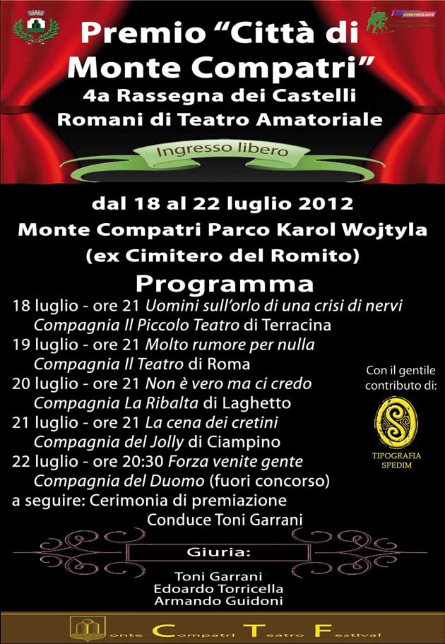 Il Comune di Monte Compatri e l’Associazione Photo Club Controluce presentano la “7a Rassegna Teatro Amatoriale dei Castelli Romani”