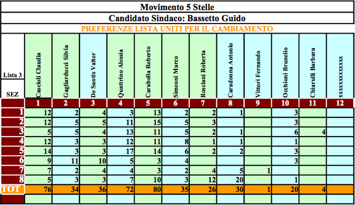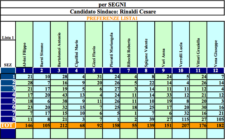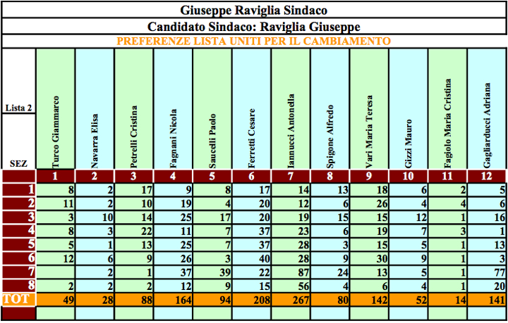 | CANDIDATO SINDACO | LISTA | VOTI | % VOTI |