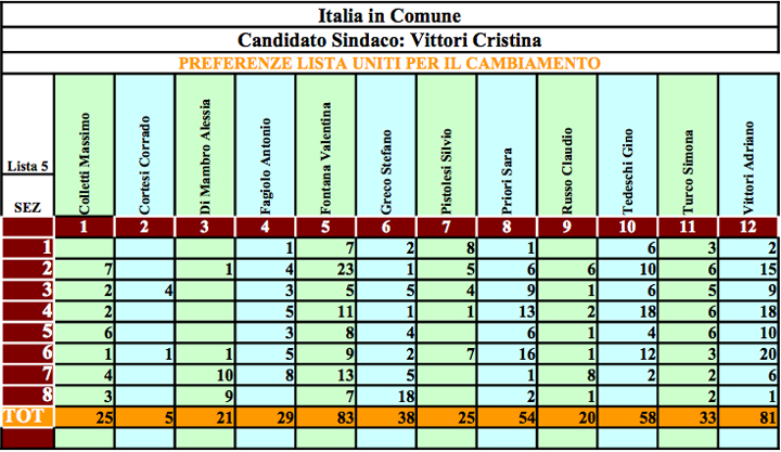 Per effetto del risultato elettorale il Consiglio Comunale sarà così costituito: